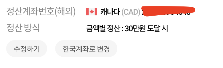 캐나다 달러로 바로 정산금을 쏴주니 수수료를 좀 더 아낄수가 있습니다