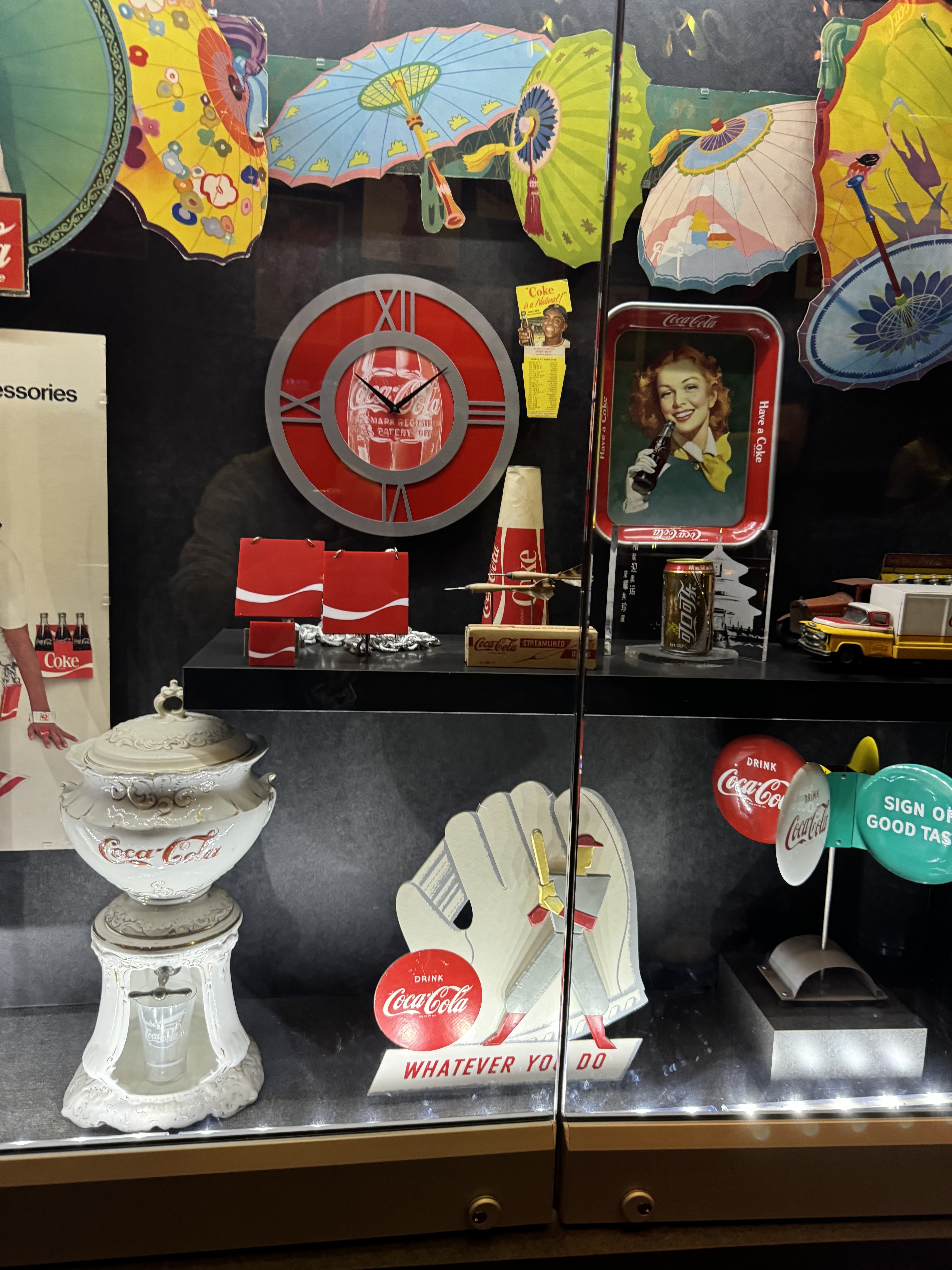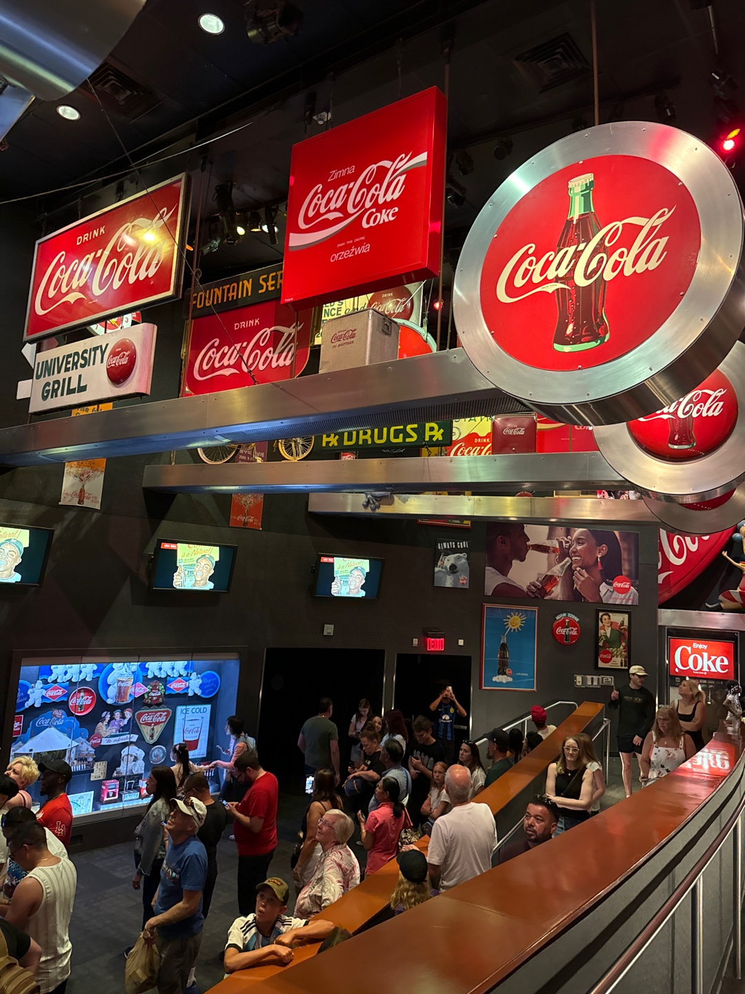 천정과 곳곳에 여러 나라 다양한 시대에서 온 코카콜라 간판, 조형물들이 가득합니다