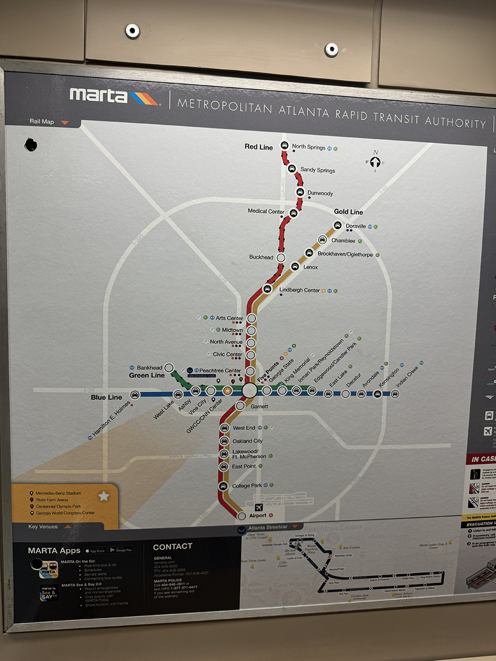 그리고 뉴욕이나 시카고 워싱턴 이런데 비하면 좀 많이 빈약하지만.. (그대로 토론토보다는 나은..?) 지하철 노선망과 촘촘하게 버스 노선이 애틀란타 시를 커버합니다