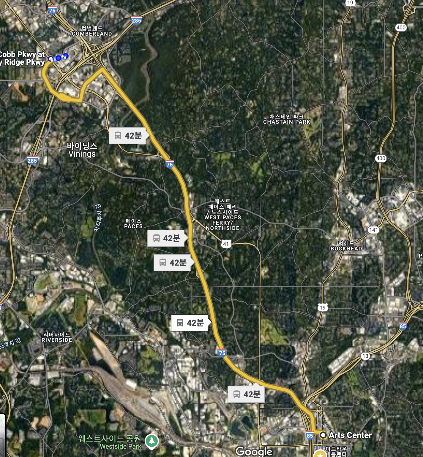 애틀란타 시 바깥 cobb county로 가는 버스지만 다행이도 추가비용은 없습니다