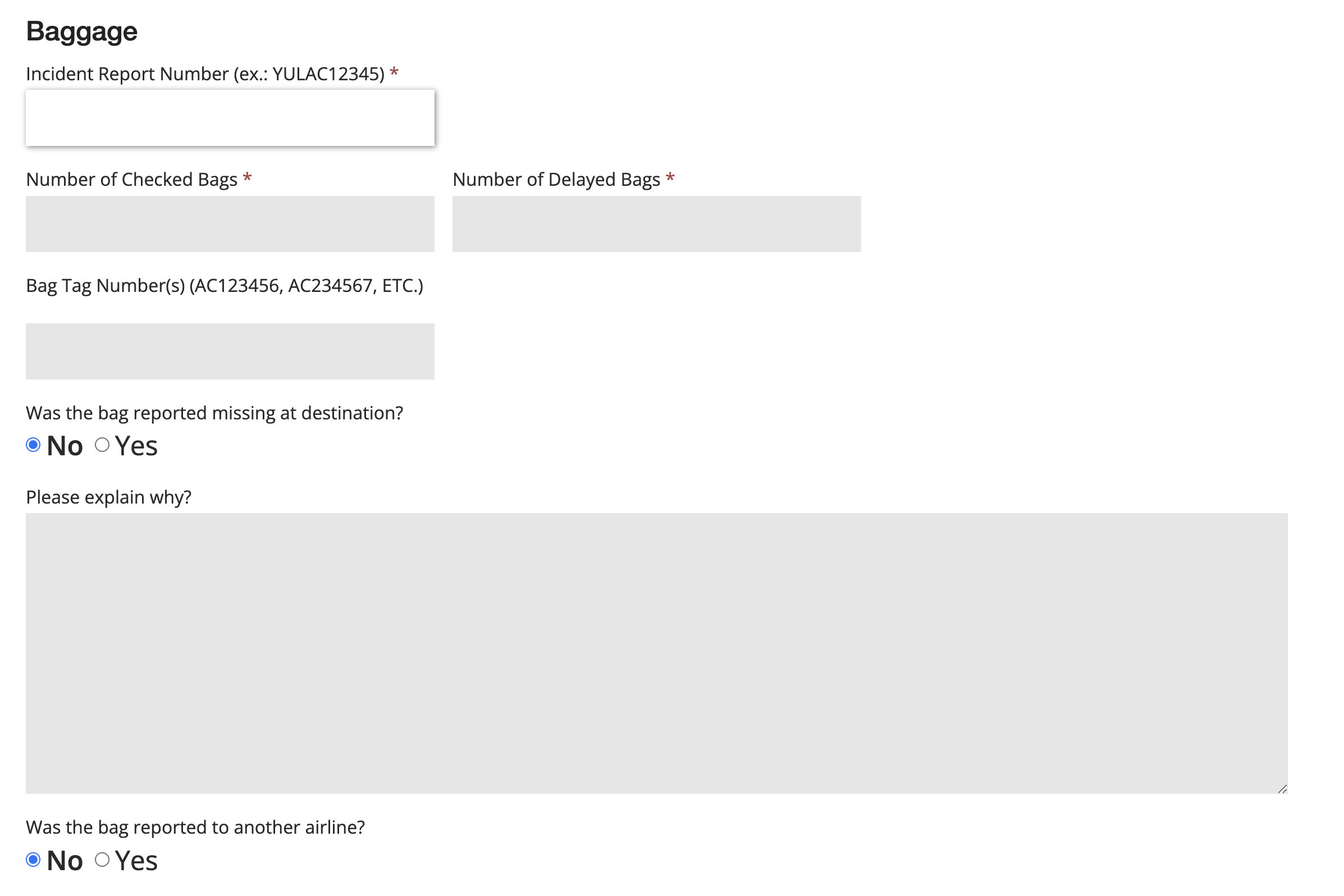 Incident Report Number는 처음 받은 이메일에 적혀있는 'delayed bag file number'를 입력하시면 됩니다